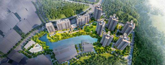 项目自带超大面积的湖泊和立体花园,营造出依山环湖的诗意生活图景。