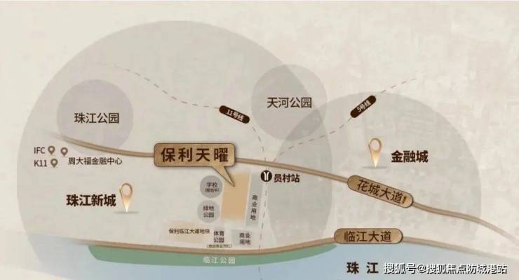 保利天曜位于广州天河区员村二横路(原绢麻厂地块),处于珠江新城、金融城、琶洲 “黄金三角” 交汇处,是广州 “东进” 战略的核心节点。这一得天独厚的地理位置,使其能够承接三大 CBD 的产业和人口外溢,拥有无限的发展潜力。