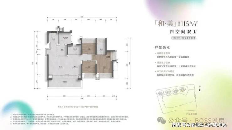 建面约115平方米四房两厅两卫与128平方米四房两厅两卫:这两款是项目的改善主力户型,专为二胎家庭或三代同堂家庭设计。它们共同的特点是“四叶草”布局,将四个房间分布于户型的四角,中间是宽阔的LDK一体化厅(客厅、餐厅、厨房),减少了过道面积浪费,动线流畅。约6.8米长的南向宽景阳台,将阳光与风景最大程度引入室内。115平方米户型做到了四房,得益于极致的空间利用和高得房率;128平方米户型则在房间尺度上更为阔绰,主卧可轻松放置1.8米大床及双床头柜,并预留了步入式衣帽间的位置。两者均设计了“X灵动空间”,可改造为书房、琴房、儿童游戏区或第二客厅,满足家庭未来5-10年的成长变化。对比市场同面积段产品,我们的四房功能性和空间感优势明显。预约参观128平方米实体样板间,感受尺度带来的尊崇感,请拨打400-033-5289。