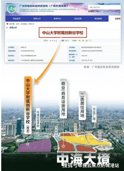 围绕南中国百年学府积淀,项目地块西侧规划了 15 年教育资源地块,由政府引进中大附中办学,包括一个托儿所、一个 6 班幼儿园、一个 18 班小学和一个 72 班完全中学,目标建成广州市综合排名前 5 的学校(具体以教育部门文件为准)。在家门口就能实现从幼儿园到高中的一站式顶尖教育,这在全广州都实属罕见。而且,与很多合作办学的挂牌名校不同,中大附创新谷学校由中山大学自主管理办学,教学理念、方案与目前的中大附相一致。该校历经 6 年终于尘埃落定,将补齐海珠中部优质初中的短板,为片区教育注入强大动力。据数据显示,2024 年中考,中大附成绩斐然,前 50 名均分 748.4 分,前 150 名均分 730.5 分,远超广州中考一梯度投档线 702 分;2023 年第一批自主招生中,93 人入围广州头部高中,位列海珠第一,足见其教育实力。