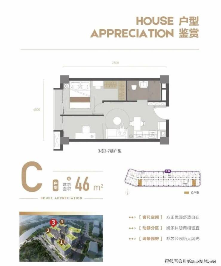 户型:约28㎡、32㎡、38㎡、46㎡、95㎡,3米层高,部分顶层是3.8米层高,全部户型均是平层。