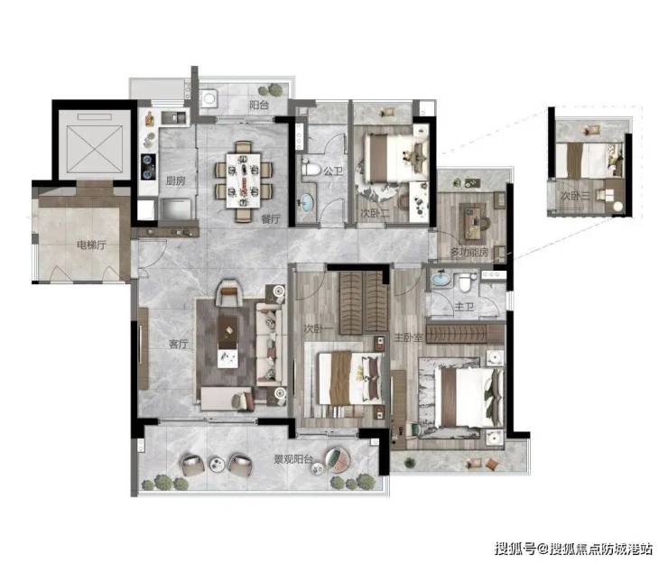 ◇大方厅/中西厨岛台设计/双主套设计奢阔空间尺度,全城罕见约8.3米南向观景阳台,270°一线广角山景大宅,赋予生活无限想象,定义城市进阶圈层。