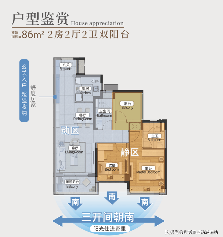 主力户型集中在75–98㎡,全部是精装交付,两梯六户设计。我重点看了86㎡的东南向三房,客厅开间3.5米,三个房间都朝南,阳台正对园林,采光和视野都不错。96㎡和98㎡的四房都做了约6.5米的大横厅,主卧带步入式衣帽间,空间感比市面上同面积段产品更舒展。值得一提的是,77㎡的三房通过优化墙体布局,实际使用率较高,适合预算有限但又不想牺牲功能性的买家。