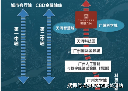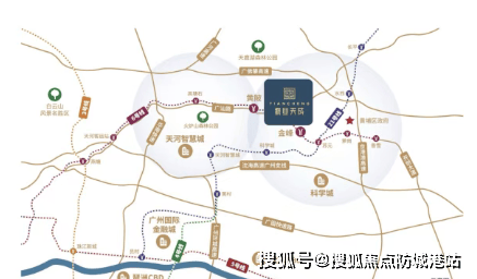 振业天成位于广州第三发展中轴线 “科技创新轴”,地处天河智慧城和黄埔科学城双城交汇之地,同时落址广汕路中芯位置,集生态、商务、居住功能于一体,发展前景堪比黄埔大道。天河智慧城作为广州时隔 32 年成立的第二个高新区,定位为 “广州硅谷”,投资力度是珠江新城的 4 倍,已有 2500 家企业进驻,如网易总部、酷狗等科创龙头企业,致力于 2025 年建设成为全市创新型企业孵化培育高地。广州科学城则是广深科技创新走廊重要 “创新极”,战略性新兴产业产值占全市 50% 以上(规模以上),高技术产业产值占全市 72.6%,科技创新能力稳居全国经开区第一,目标是打造具有国际影响力的 “中国智造中心”。此外,广汕路连通天河、黄埔两大百强区,是广州未来十年规划发展的重点,东西两段分别串联多个优质区域,将成为广州未来发展新引擎。