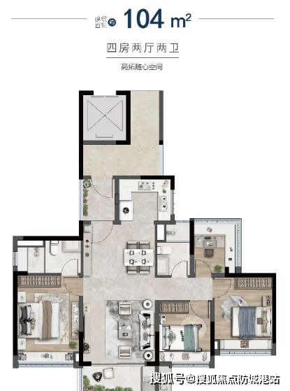 项目均为纯改善户型,建面约 104 - 168㎡纯南向四房,朝南而居,南北通透,阳光清风常伴,满足品质改善需求。