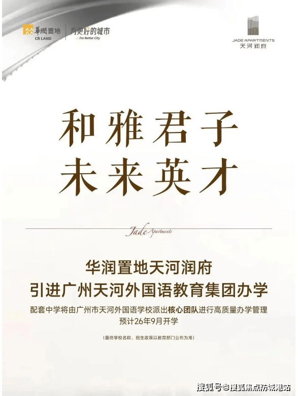教育确定性,是天河润府最硬核的筹码之一。根据最新政策导向及教育局规划,项目对口小学已明确为体育东教育集团均和小学——作为体育东系新锐成员,共享集团教研资源与管理模式,起点即高配。初中方面,项目配建学校已封顶,确认由广州市天河外国语学校(天外)办学,2026年9月正式开学,管理团队、教材体系、教学活动与珠江新城本部同步,属“同根同源”分校。更关键的是,业主子女还有机会参与天河执信中学的摇号入学,形成“保底+冲刺”双保险格局。在“学位房”政策日益收紧的背景下,天河润府凭借政府已批复的配建学校+明确对口关系,规避了多数新盘“画饼式教育配套”的风险,堪称天河东部近年少有的教育确定性标杆盘。