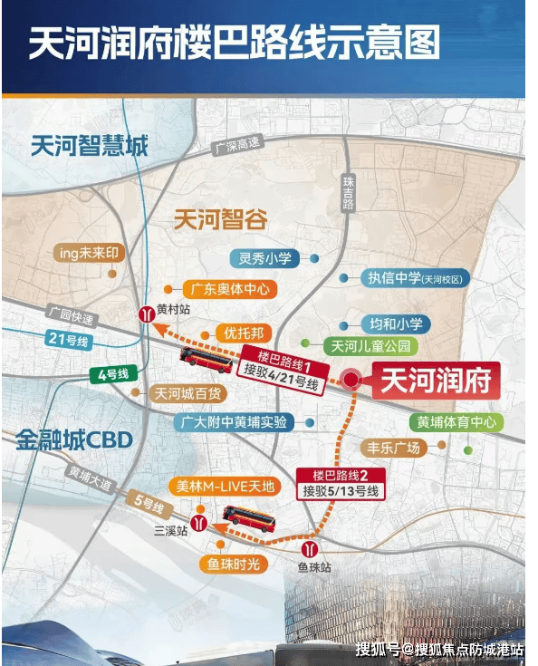 天河润府堪称“市中心首个配楼巴社区”,交付起连续5年免费提供两条定制化楼巴专线:一线直达奥体中心接驳地铁4/21号线黄村站,覆盖天河智慧城、科学城;另一线直通鱼珠商圈,3站抵金融城、7站达珠江新城,高效串联CBD核心。自驾方面,项目距金融城、琶洲、珠江新城均约10公里,非高峰时段20分钟内可达。更值得期待的是,由华润代建的茅岗路北延段改造工程将于2025年完工,道路由原单向2车道升级为40米宽双向6车道,彻底打通片区交通瓶颈。此外,项目还将配建公交首末站,未来多路公交线路将在此始发,形成“地铁+楼巴+公交+主干道”四维立体交通网,真正实现“快进快出、无缝换乘”的都市通勤自由。