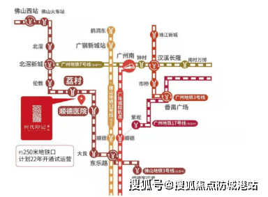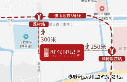 时代印记位于佛山3号线双地铁上盖,距离荔村站约300米,四横六纵路网覆盖,30分钟内即可到达番禺市桥,轻轨一站直达广州南站,坐享湾区1小时生活圈。项目所在的伦教街道,作为顺德的核心区域之一,正在迅速发展成为集高科技、文化和商业为一体的综合性城区。