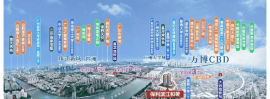 保利滨江和著具体位于广州市番禺区朝阳东路297号,地处番禺大石板块核心区域,紧邻万博CBD,直线距离仅3公里,步行可达大石街道核心商圈,地理位置得天独厚。项目择址星河湾滨江带,距离珠江仅100米,占据广州约4%的稀贵江景资源(据中指研究院数据,广州8年供地仅12宗江景地块),是万博CBD旁唯一的270°环幕江景住宅,地理位置稀缺性不言而喻。