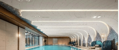 社区内约 1500m² 奕 CLUB 生活服务中心,以 “创新国际运动、松弛生活方式、情绪能量疗愈、私享社交互娱、功能二次细分、艺术美学融入” 六大维度出发,构筑十大新容功能,全方位定制松弛主义生活方式。引入保龄球、沙壶等国际精英运动项目,配备恒温泳池、高压氧舱、湿蒸桑拿、瑜伽房等设施,满足业主运动、休闲、放松的需求。会客厅、私宴厅、棋牌室、阅读室等空间,充分承载聚餐会晤、休闲等多元社交需求,同时引入艺术装置,提升空间的艺术氛围。