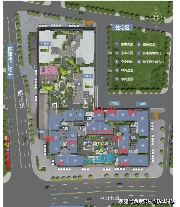 91-128㎡三至四房(B 栋、D 栋):改善主力户型,91㎡三房南北通透,107㎡四房带独立玄关,主卧配备步入式衣帽间,部分户型可远眺陈家祠景观,适配三口之家;