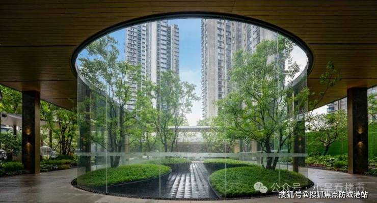 往里走,则是开发商斥资6000万打造的约3.8万㎡社区园林,弧形超白玻璃,圈出一方露天的浮岛森林,8棵造型别致的乌桕,极富生机。