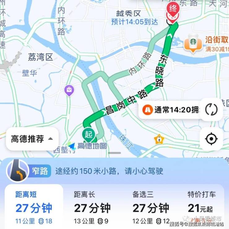 自驾去海珠琶洲:出小区走东沙大道辅路上广州环城高速,下到新港东路,全程22公里,耗时30分钟左右。