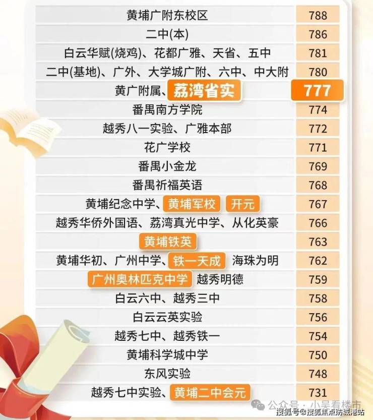 最高分777分,在目前已经公布的中考喜报学校中,位列第一梯队,不仅超过真光、广雅本部、越秀铁一、广州中学等老牌名校,也超过科学城(黄埔铁英、黄埔军校、二中开元、会元)、天河东(奥林匹克中学)、亚运城(番禺铁一、铁一天成)等有新盘对口的热门名校。