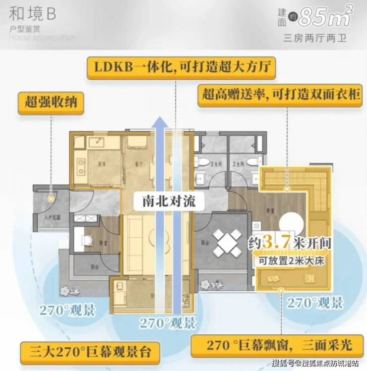 约3.7米开间主套卧,270°巨幕飘窗,礼遇品质生活