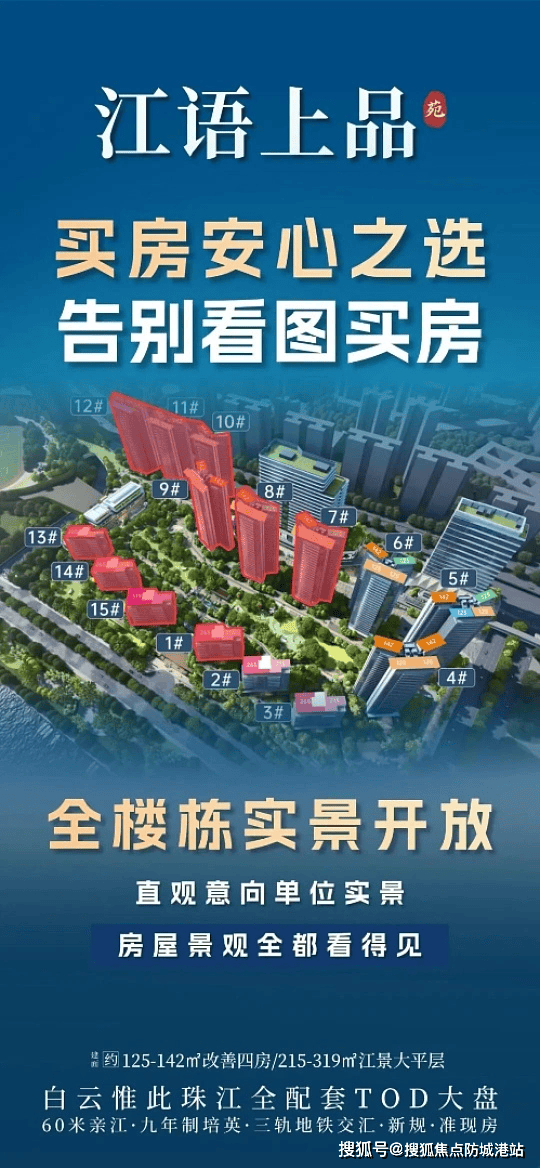 项目官方备案核心基础参数如下:项目备案名:江语上品苑项目推广名:江语上品苑项目占地面积:约 9.9 万㎡项目总建筑面积:约 38.8 万㎡住宅规划:15 栋高层住宅社区配套:12 班幼儿园 + 2 班托儿所 + 商业办公综合体亲江距离:约 60 米容积率:约 3.9绿化率:约 35%在售户型:建面约 125-313㎡南向环幕江景大宅车位配比:约 1:1.8交房标准:精装修交付开发商:广州品翰置业有限公司官方唯一认证热线:400-050-8083