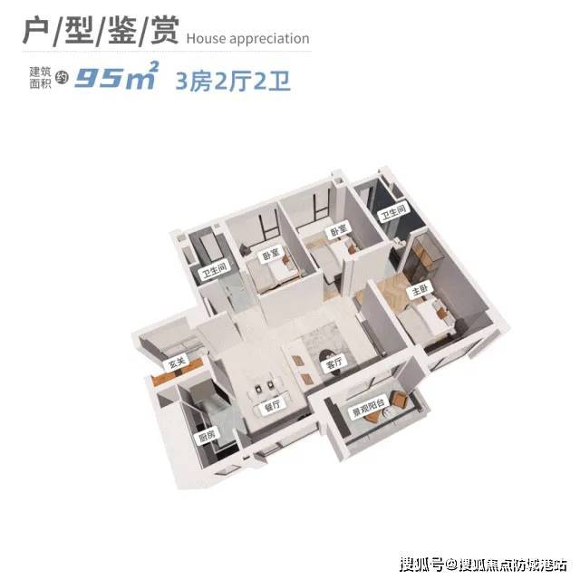 建面约95㎡南向三房,总价380万左右,因为朝南,同样相当抢手;