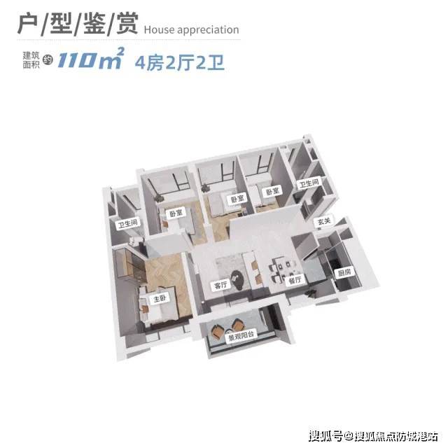 建面约110㎡南北对流四房,约3.7-3.8万/平,总价420-430万左右,最低不到400万可买,一步到位买四房。