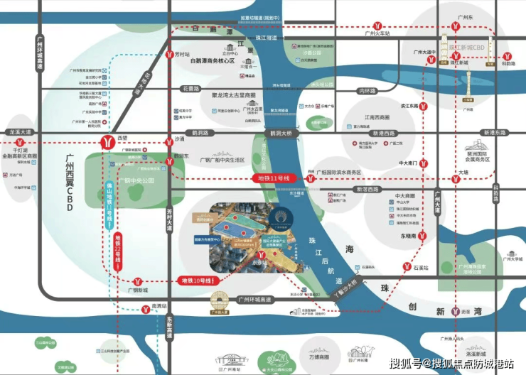答:项目周边有三地铁环绕,地铁 10 号线东沙站(距离约 600 米)已于 2025 年底开通运营,30 分钟内可直达珠江新城、广州南站等核心区域;地铁 1 号线西塱站(距离约 3.5 公里)已运营,地铁 22 号线(在建中,预计 2027 年通车)。自驾经东沙大道、广州环城高速等主干道,可畅达全城。