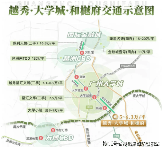 自驾出行:项目周边有多条快速路、主干道环绕,自驾出行便捷高效,无需经历长时间拥堵。其中,南大干线已经正式开通,这条线路串联起广州南站、汉溪长隆、万博CBD、大学城、国际创新城、广汽基地等番禺核心板块,从项目出发,经南大干线自驾5分钟即可直达万博中心,享受万博CBD的商业、休闲、娱乐等全能配套;同时,金光东隧道已经通车,从项目出发,自驾5分钟即可直通大学城一期,实现大学城一二期资源的快速链接、整合,真正融合成为一个整体,让业主既能享受大学城2.0的发展红利,又能便捷享受大学城一期的成熟配套。