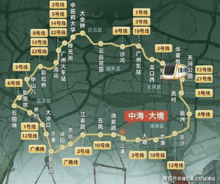 地铁11号线: 广州首条市区大环线,被誉为“换乘之王”,串联天河、越秀、荔湾、海珠、白云五大核心区,与广州现有及未来的所有地铁线路实现换乘。项目D出口就在楼下,日常出行通达主城核心板块,无需换乘即可直达广州火车站、广州东站等交通枢纽。