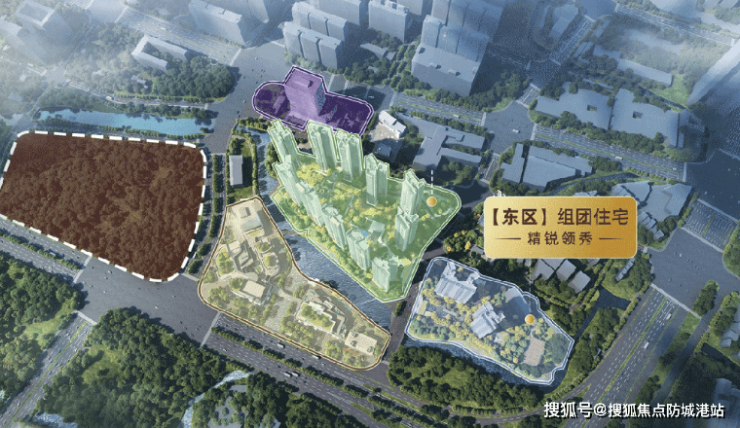 项目总占地面积17.7万平方米,计容建筑面积约36万平方米,规划14栋高层住宅,容积率控制在约3.8,绿化率高达35%,这在寸土寸金的海珠核心区极为罕见。规划显示,项目将打造“泛大境”五区联动格局:西区为90班中山大学附属创新谷学校,补齐片区教育短板;中区为围合式中央公园,打造约1.5万㎡的超大园林,户均享有约50㎡绿化空间;东区为纯粹住宅组团,主打140-200㎡大户型;南区为约4万㎡滨水商业街区,融合购物与休闲;此外还配备高定泛会所。这种规划理念打破了传统小区的封闭边界,通过开放式庭院设计,模糊了围墙隔阂,实现了红线内外生态的无界交互。每一寸土地的利用,都经过了精密的日照分析、风环境模拟及景观视线推演,确保高区住户能俯瞰湿地全景,低区住户也能沉浸于郁郁葱葱的园林之中。