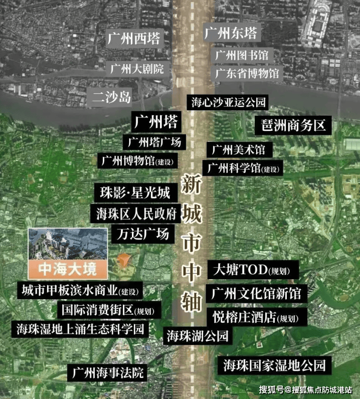 根据广州市规划和自然资源局发布的《海珠区中大片区控制性详细规划》及《广州新中轴线南段城市设计》,该区域被明确界定为“广州新中轴线南延核心段”与“国际生态宜居示范区”。中海大境项目地块于2023年9月经过85轮激烈竞拍,由中海地产以溢价封顶摇号的方式竞得,折合可售楼面地价高达57206元/㎡,彰显了央企对这片土地价值的绝对信心。