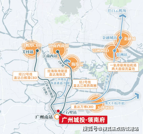 广州城投领南府位于番禺区南站板块,紧邻地铁2号线和7号线石壁站,仅约300米的距离使其成为真正的地铁上盖物业。项目由广州市城达房地产开发有限公司(隶属于广州城投集团)开发,不仅提供了便捷的交通条件,还拥有高标准的精装交付标准,是追求高效出行和高品质生活的理想选择。