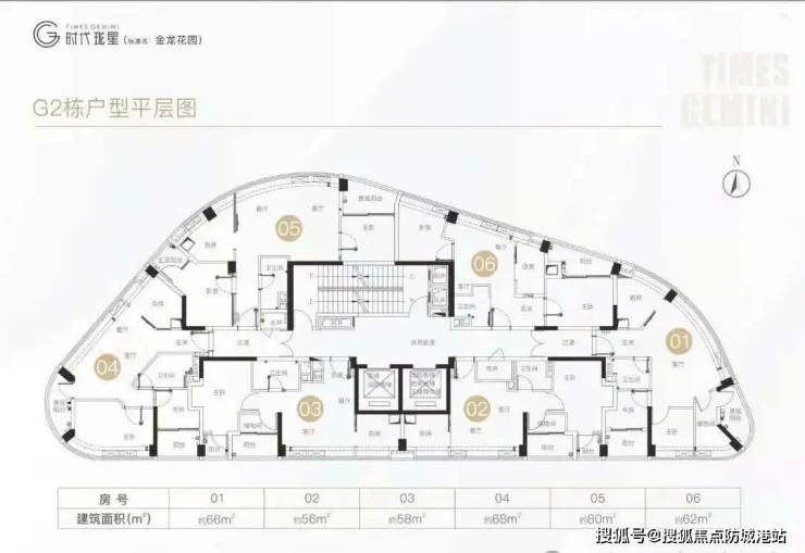 再来看看整个项目,一共两栋楼,G1星悦和G2星曜。G2均为56-80㎡两房,两梯六户,只有23层,共120套货量。G1建面约98-107㎡三房单位,每一套,属于较方方正正的户型,两梯六户。主力户型为约98平/105平/107平三房两卫。