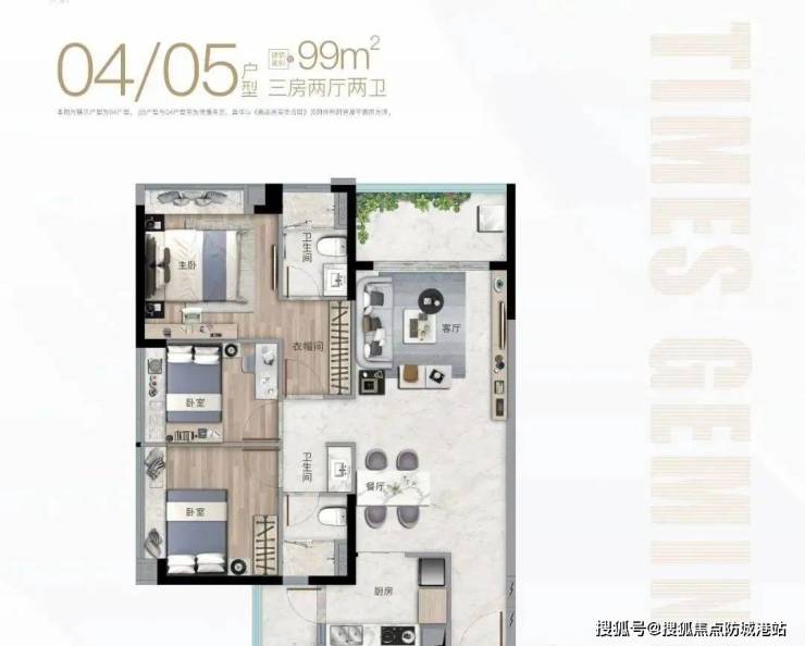 项目主力户型为建面约89㎡全能三房,以“小面积大功能”著称。