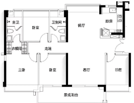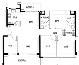 建面约124㎡四房PLUS版:在121㎡的基础上增加了北侧生活阳台及书房连接景观阳台的设计。