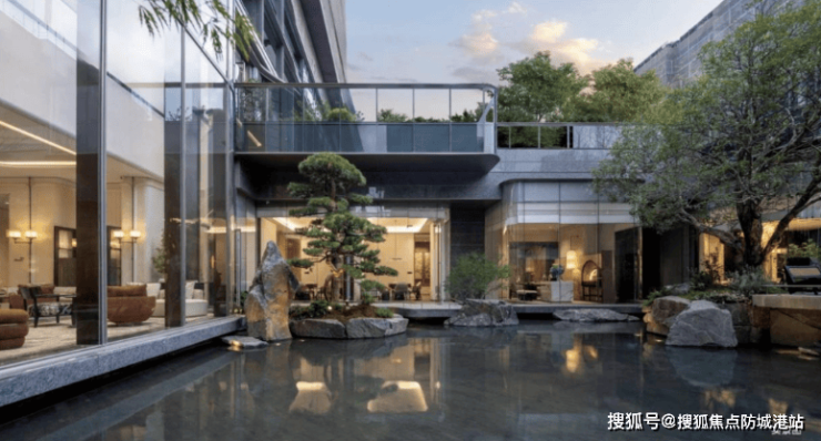 项目园林以“一轴一带五境六集七园”为框架,营造出层层化境的优美景观。归家途中,一进归家大堂珠光华彩,二进社交水院细水长流,三进中庭花甸绿意葱茏,四进泳池之境体验水境游心,五进单元门庭感受花园秘境,五重礼序美景循着中轴层层递进,带给业主尊崇的归家体验。此外,还有百米河道公园 - 四季花汀、街角榕树广场等,滨水休闲生活在此舒展开来,让业主在城市中也能享受宁静惬意的园林生活,实现自然生态与城市繁华的完美融合,启幕理想人居新境界。