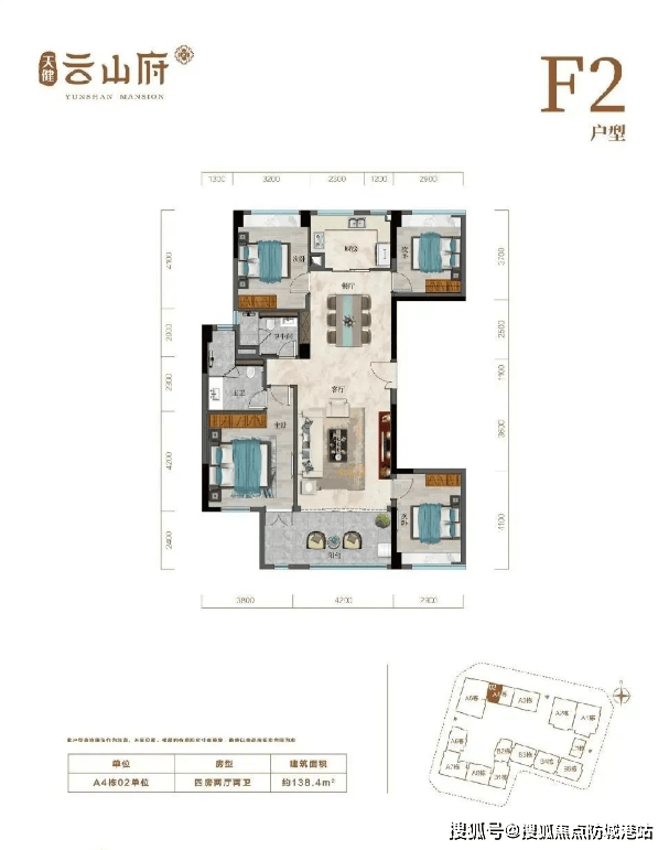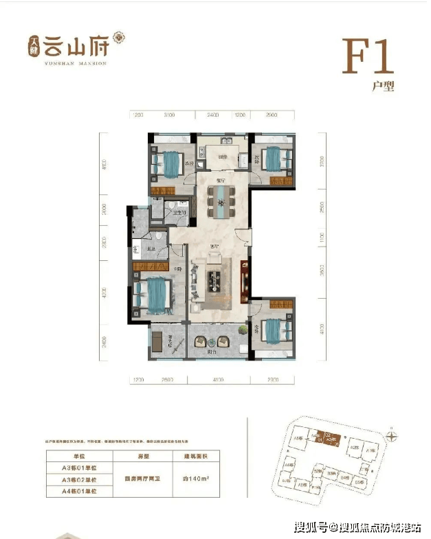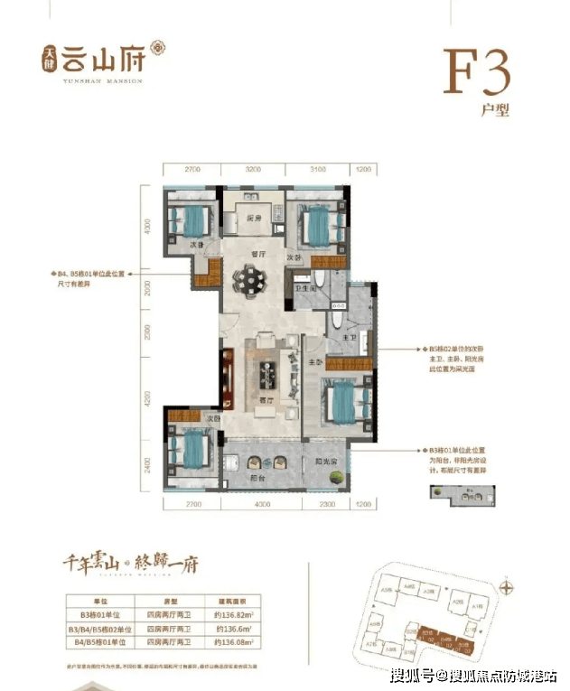 目前,天健·云山府处于最后清盘阶段,A区住宅仅剩两套低层单位,而B区的5栋小高层单位则以一梯两户的四房大户型为主。具体在售户型包括: