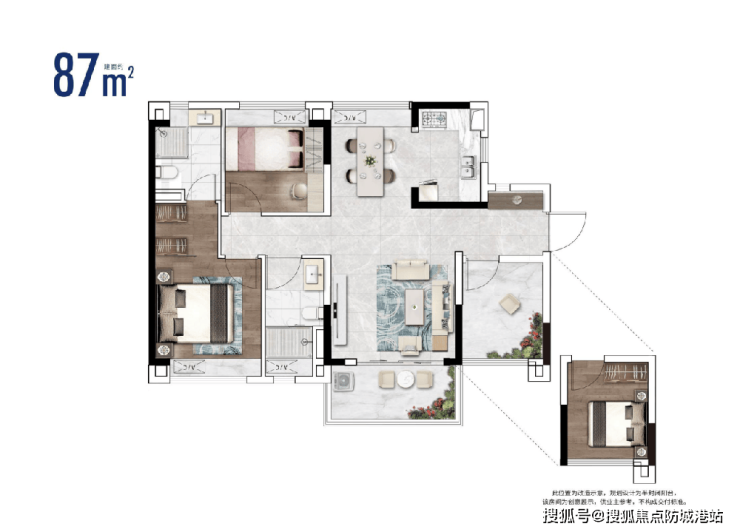 产品力细节: 主力户型为建面约91-140㎡三至四房,设计亮点包括: