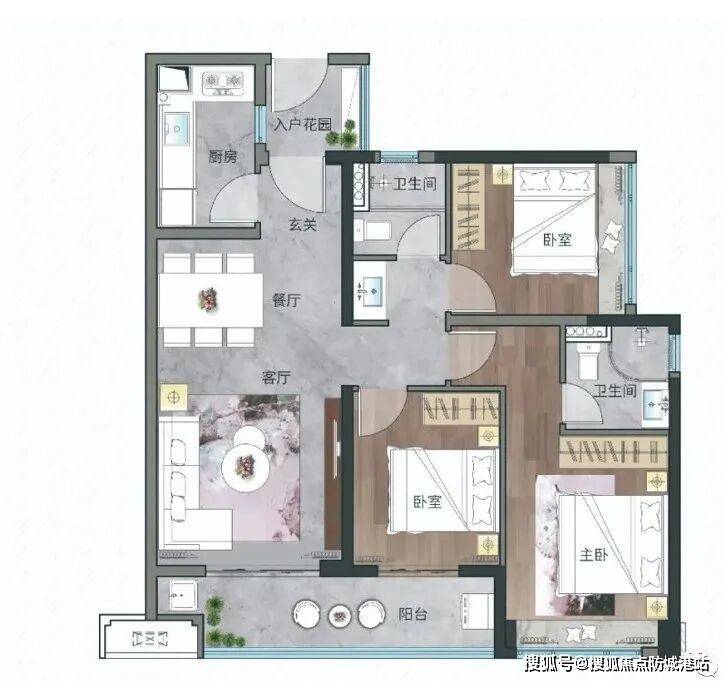 然后是我们建面约99平的三房户型,这个户型也是我们项目的爆款户型,非常适合三口之家、三代同堂的家庭。户型非常方正,动静分区做得非常好,休息区和活动区完全分开,家人之间不会互相打扰,轻松满足三代同堂的居住需求。进门就有独立的入户空间和玄关,充分尊重大家的生活私密性,回家有满满的仪式感。标准的竖厅格局,餐客厅相连,直通景观阳台,整个空间看起来非常宽敞大气,通风采光效果也非常好。南向卧室与大阳台连通,大大拓展了景观视野,坐在卧室里就能看到小区的园林景观。主卧带独立主卫,给主人足够的私密空间,充分体现主人的尊贵感。这个户型可以说是把实用性和舒适度做到了完美平衡,没有任何短板,是刚需家庭一步到位的首选。大家是不是也想找一个户型方正、动静分区、能满足一家人居住需求的三房户型?本段落信息来源为湾区金融城官方营销中心户型公示信息,可核验。