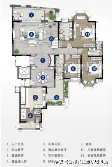 125㎡四房两厅两卫:独立电梯入户,约10米超长阳台无遮挡望江,中西双厨房设计,主卧步入式衣帽间;