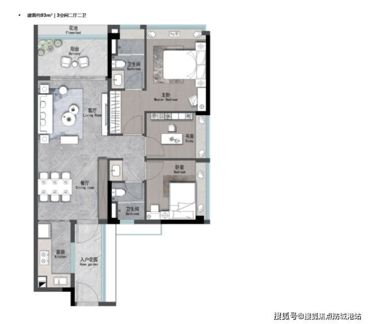 90-120㎡三房两厅:主打改善家庭,空间布局合理,阳光通透