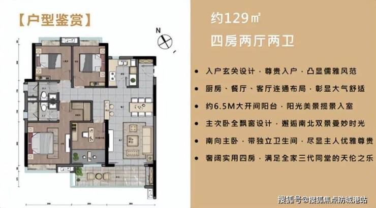 纯南向——建面约103-129㎡纯南向揽景三至四房,约6.4米宽阔观景大阳台,以清新自然守护家人的健康生活