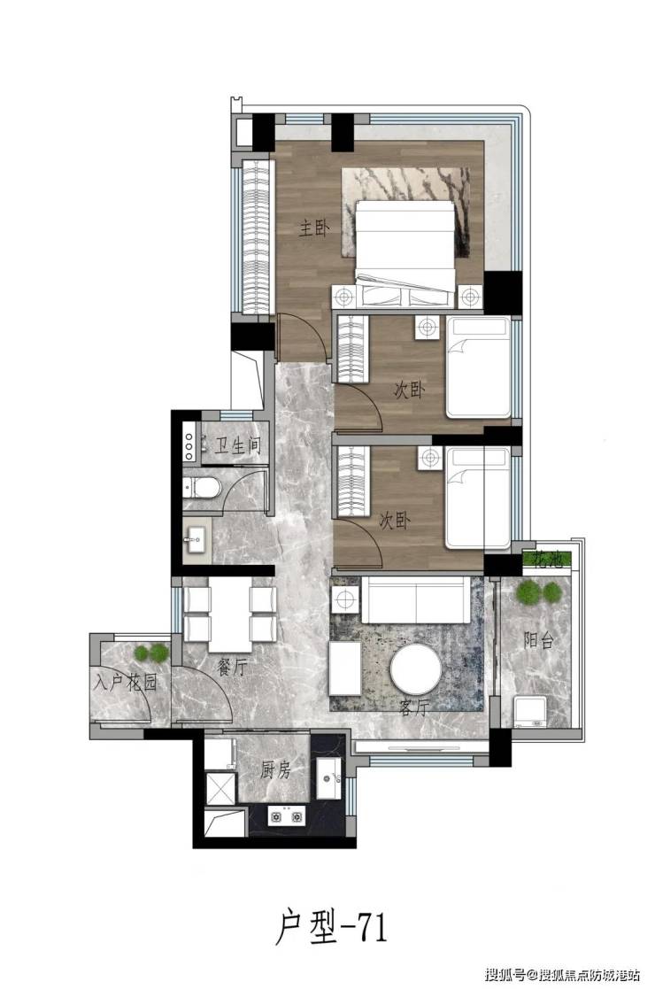 71㎡,南北对流三房。