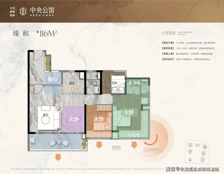 116㎡四开间朝南超大视野景观阳台(得房率98%)
