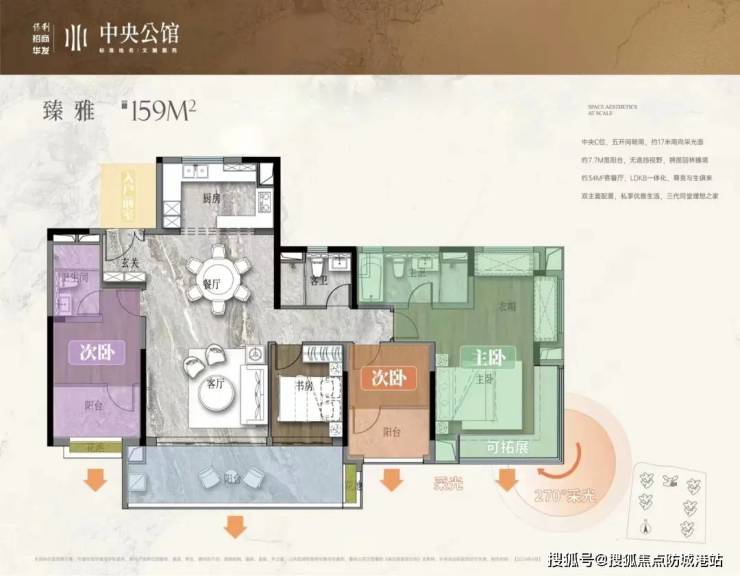 159㎡双主套南向巨幕景观大阳台(得房率95%)