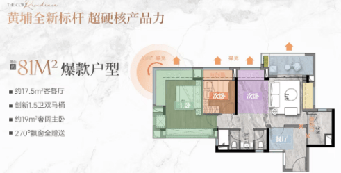 保利华发招商中央公馆采用了围合式设计,共有6栋47层高的塔楼,其中2号楼为两梯四户,其余均为三梯六户。在售户型包括81-159平方米不等,满足不同家庭的需求。特别是该项目是黄埔首个使用率超过100%的项目,无论自住还是后期放卖都具有较高的性价比。