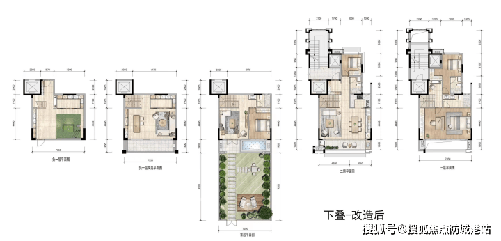 实际可用面积约300㎡,同样拥有200%的高实用率,共有四层,涵盖地上六、七、八层及地下一层。