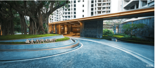 项目采用围合式布局,营造内向型私密社区,近百米超宽楼间距确保每户采光与视野。中央打造约1.5万平方米大园林,保留十余棵原生大榕树,并创新设计约1300㎡“榕樾山水会客厅”,融合自然与社交功能,提升居住仪式感。
