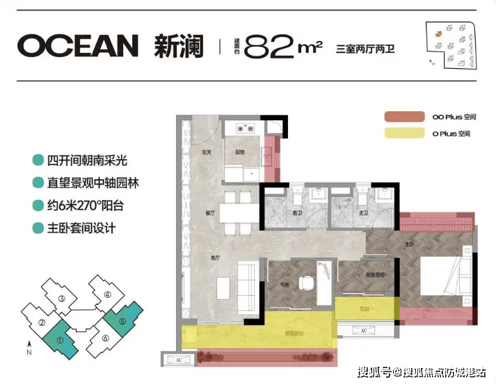 3. 82㎡南向三房两卫:景观与通透兼得