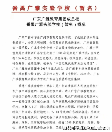 项目共配建了幼儿园、小学和初中三个教育用地,分别是广东省番禺实验幼儿园、东风东小学和广雅中学,均为名校资源。这些学校将于2025年9月正式开学,业主只需拿到网签合同即可入读项目配建的学校。特别是对于急需解决孩子上学问题的家庭来说,这是一个不可多得的优势。