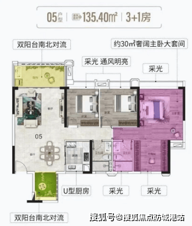 135平米3+1房2厅:四开间设计,均可观赏到珠江及小蛮腰,配备南北对流双阳台,主卧套间宽敞明亮,畅享品质奢华生活。