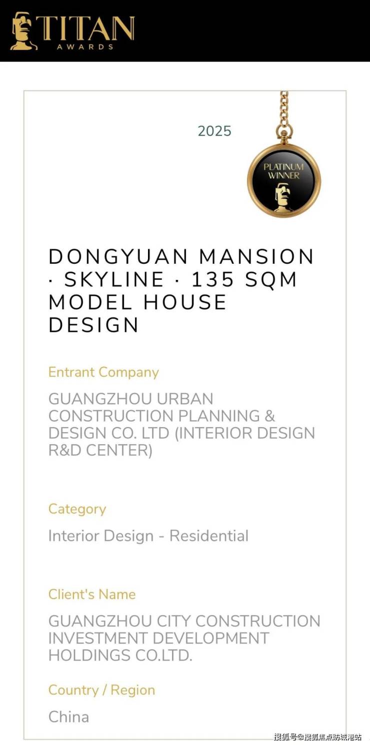在广州的高端住宅市场,总有一些项目能凭借硬核实力和独特魅力脱颖而出。近期,广州城投旗下的东园公馆与琶洲公馆就迎来了重磅喜讯 —— 两大项目的样板房作品双双摘得 2025 美国 TITAN 地产大奖(室内设计 - 住宅)铂金奖,这座素有 “地产界奥斯卡” 之称的国际奖项,无疑是对其产品力的权威认可。无论是越秀核心的广府风韵人居,还是琶洲 CBD 的一线江景隐奢大宅,两大项目都以卓越设计和极致人居体验,成为广州改善置业的优选范本。