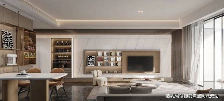 客餐阳一体 | 南向设计通风采光大竖厅设计,餐客厅既独立又相连,美食聚餐、社交会客、休闲娱乐统统搞定。南沙湾少数小面积产品朝南设计,通风采光观景阳台视野开阔,生活里满是鸟语花香与惬意。