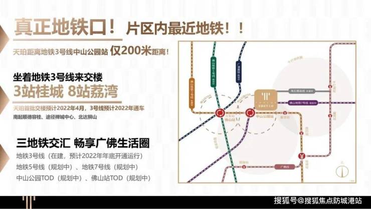 保利时代天珀交通优势得天独厚,虽未以“600米地铁口(规划中),到站即到家”的固定模式阐述,但实际交通便捷程度超乎想象。项目位于佛山中轴线北门户位置,是交通布局的核心节点。佛山地铁3号线中山公园站距离项目南侧约200米,预计2022年通车,3站可达桂城,8站可至广州荔湾,轻松实现广佛同城快速通勤。除3号线外,未来地铁5/7号线的站点也将在此交汇,形成三地铁交汇的交通枢纽。同时,政府拟打造中山公园站TOD及火车站TOD两大商圈,使其成为市区唯一双TOD交汇的黄金地段,TOD模式将进一步整合交通资源,提升出行效率。此外,规划中的广湛高铁佛山站,作为市中心唯一高铁站,将带来高铁“吸虹效应”,助力项目真正融入湾区1小时生活圈。这种多维立体的交通网络,无论是日常出行、商务活动还是休闲旅游,都能让居民高效畅行广佛及大湾区各地。